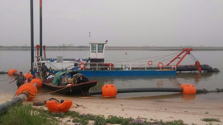 絞吸式挖泥抽沙船是目前在疏灘清淤工程、采沙工程中運用較廣泛的一種設備,它是利用吸管前端裝設的旋轉絞刀裝置,將河底泥沙進行切割和攪動,借助強大的泵力將絞起的泥沙物料通過輸送管道輸送到泥沙物料堆積場,它的挖泥沙、運泥沙、卸泥沙等工作過程,可以一次連續完成,它是一種效率高、成本較低的泥沙挖掘設備,是良好的水下挖掘機械。
