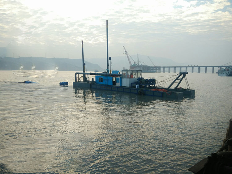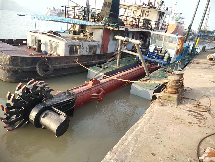 絞吸式挖泥抽沙船是目前在疏灘清淤工程、采沙工程中運用較廣泛的一種設備,它是利用吸管前端裝設的旋轉絞刀裝置,將河底泥沙進行切割和攪動,借助強大的泵力將絞起的泥沙物料通過輸送管道輸送到泥沙物料堆積場,它的挖泥沙、運泥沙、卸泥沙等工作過程,可以一次連續完成,它是一種效率高、成本較低的泥沙挖掘設備,是良好的水下挖掘機械。